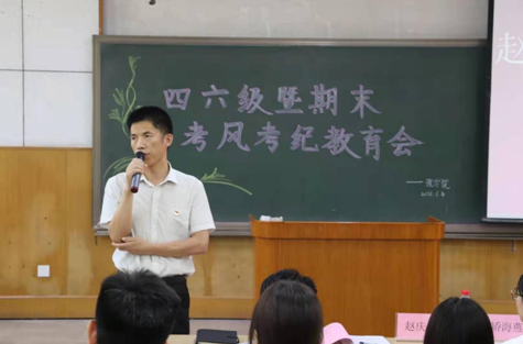 大会第四阶段,院党委副书记赵庆全对本次会议进行了总结,强调了诚信考试的重要性,告诫同学们要坚守底线,杜绝作弊,诚实做人。同时,对参加四六级以及期末考试的同学们做考前鼓励,希望大家在考试中遵守考试纪律,取得优秀的成绩。