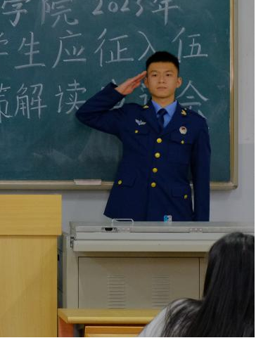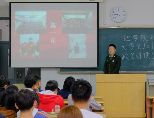 张锦龙表示,光荣参军,保家卫国终不悔,在军营中的生活让他学习到了很多在学校无法学习的知识,并为他的人生多添了一抹色彩,并对大学生应征入伍的流程做了详细解读与现场答疑。