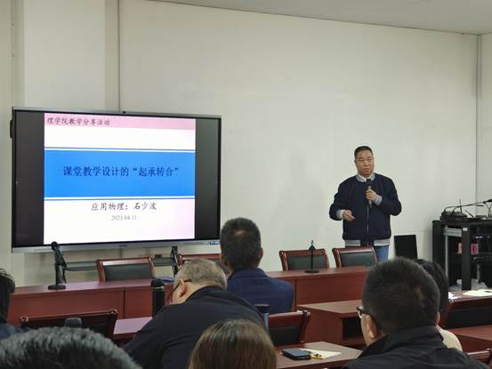 应用物理系石少波教授在A602做了关于“课堂教学设计”的教学分享会,学院全体教师参加并参与讨论。