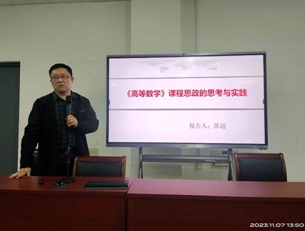 本年度课程思政专题教研系列活动之一,高等数学教学部陈超老师于11月7日下午在A602做了题为《<高等数学>课程思政的思考与实践》的讲座,学院全体教师参加。