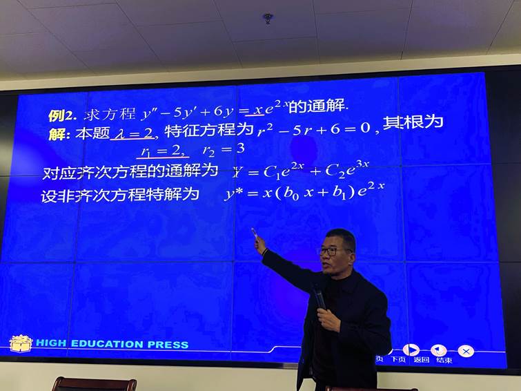 汤国明教授首先就《高等数学》课程第十二章第九节“常系数非齐次线性微分方程