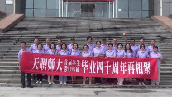 数8001班校友毕业四十周年重返母校,学院党委副书记戚霄、学工办主任兼团委书记张轶硕与20多名校友共同回首往事,畅叙美好情缘。