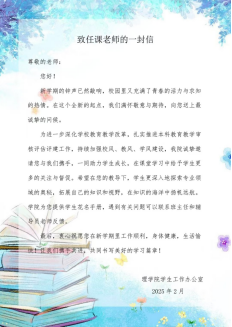 开学初,学院精心组织制作了包含班主任、辅导员联系方式的学生花名册,方便任课教师教学管理,加强沟通联系。撰写《致任课老师的一封信》,诚挚感谢任课老师的辛勤付出,希望能积极沟通教学期望与建议。发布《致天美传播媒体