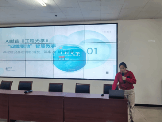徐德芹老师围绕《AI赋能〈工程光学〉“四维驱动”智慧教学》展开介绍,详解“四维驱动”模式如何借助AI技术升级工程光学的智慧教学体系;