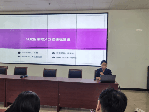 分享会上,教师们结合各自负责的课程,逐一呈现AI赋能教学的探索成果:边小丽老师聚焦公共基础课教学,以《人工智能赋能〈高等数学C〉课程建设规划》为主题,阐述了该课程借助AI技术优化教学流程、增强学生学习体验的具体规划。