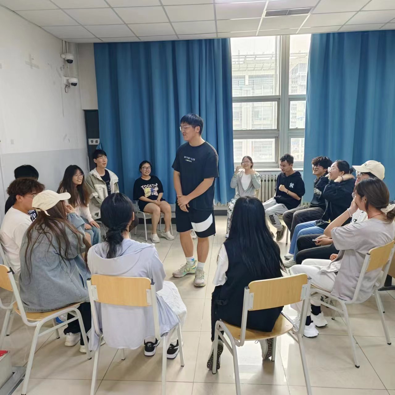 学院暖心社成员、招募各年级学生共同开展心理健康活动,此次活动共分为三个环节。第一环节通过“大风吹”、“心有千千结”活动调动现场氛围,增加同学们参与热情与积极性,以增加肢体接触的方式来提升彼此之间的熟悉感和亲密度。第二环节在彼此熟悉之后开展“交换心里话”、“留下你的笑脸”活动,此环节同学们用自己的真心话鼓励、称赞、支持彼此,用微笑治愈心灵,让同学们感受来自他人的温暖与善意。第三环节通过“答疑心理小问题”的方式进行心理健康知识普及、心理问题的纾困,帮助同学们培养积极阳光的心态,营造“人人关注心理健康”的校园氛围。