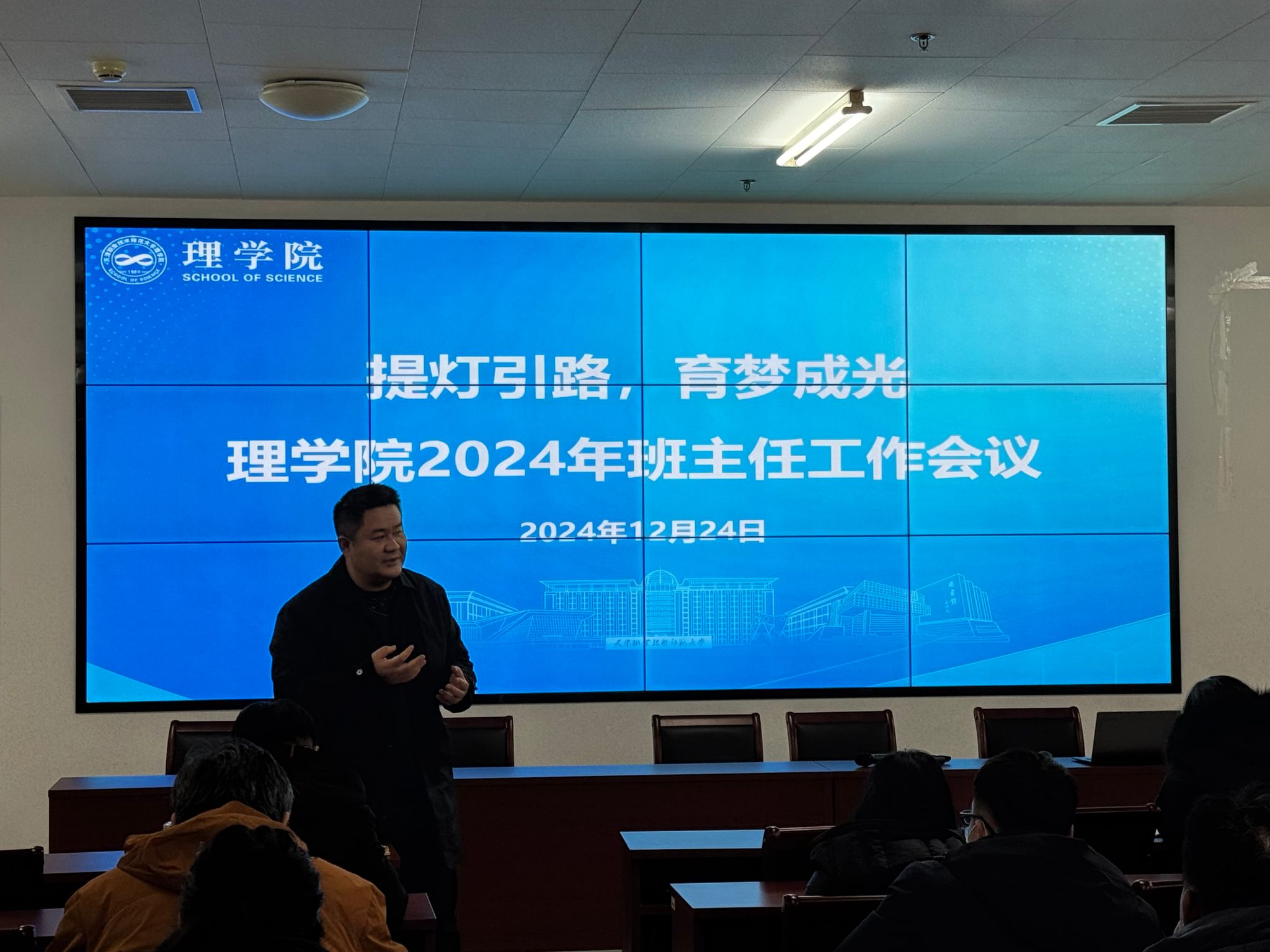 张轶硕作就业工作汇报交流。她分析了学院学生就业情况,并汇报了2025届毕业生目前的就业进展,提醒老师们抓好促就业的时间节点,提前谋划就业工作,重点帮扶就业困难学生。翟雨润作学风建设和心理工作汇报交流。她详细介绍了学院学风建设相关政策,重点围绕近期学生心理情况,给老师们详细讲解了与学生谈心谈话、与家长沟通的技巧。 李家鹏作学生安全稳定工作汇报交流。他介绍了学院学生中存在的一些不稳定因素,并汇报了学院学生今年来在电信诈骗、交通安全、意识形态等方面的特殊情况,提醒老师们加强学生安全方面的教育和引导。校级学生先进集体、数学2301班主任郭阁阳、物理2001班主任牛凯分别就班级管理和考研就业进行了经验分享。