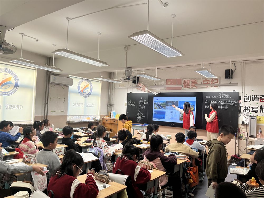 学工办主办,学院物理实验中心主任屠巍炜进行专业指导,旨在通过寓教于乐的方式,将抽象的物理知识变得生动有趣,让小学生们在轻松愉快的氛围中感受物理的魅力。自活动启动以来,每周五下午,12名学生志愿者都会准时前往土城小学。志愿者们结合小学生的认知特点,设计了多种形式的互动环节,包括动手实验、趣味问答、科普动画展示等,将声学、光学、力学等物理原理巧妙融入其中,让小学生们在实践中学习,在学习中成长。