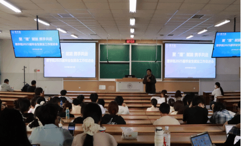 在第三教学楼108召开2025届毕业生就业工作促进会。学院党委副书记戚霄、相关系部主任、2021级班主任许茵、院学工办主任兼团委书记张轶硕、教学秘书刘安康及全体2025届毕业生参会,会议由张轶硕主持。