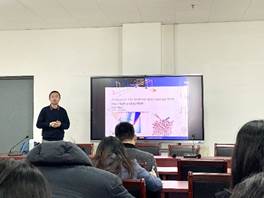 228日下午,天美传播媒体 教师牛凯在A602会议室为全院师生做了题为“水表面二阶非线性极化率绝对强度及谱线形状分子动力学模拟”的学术报告。