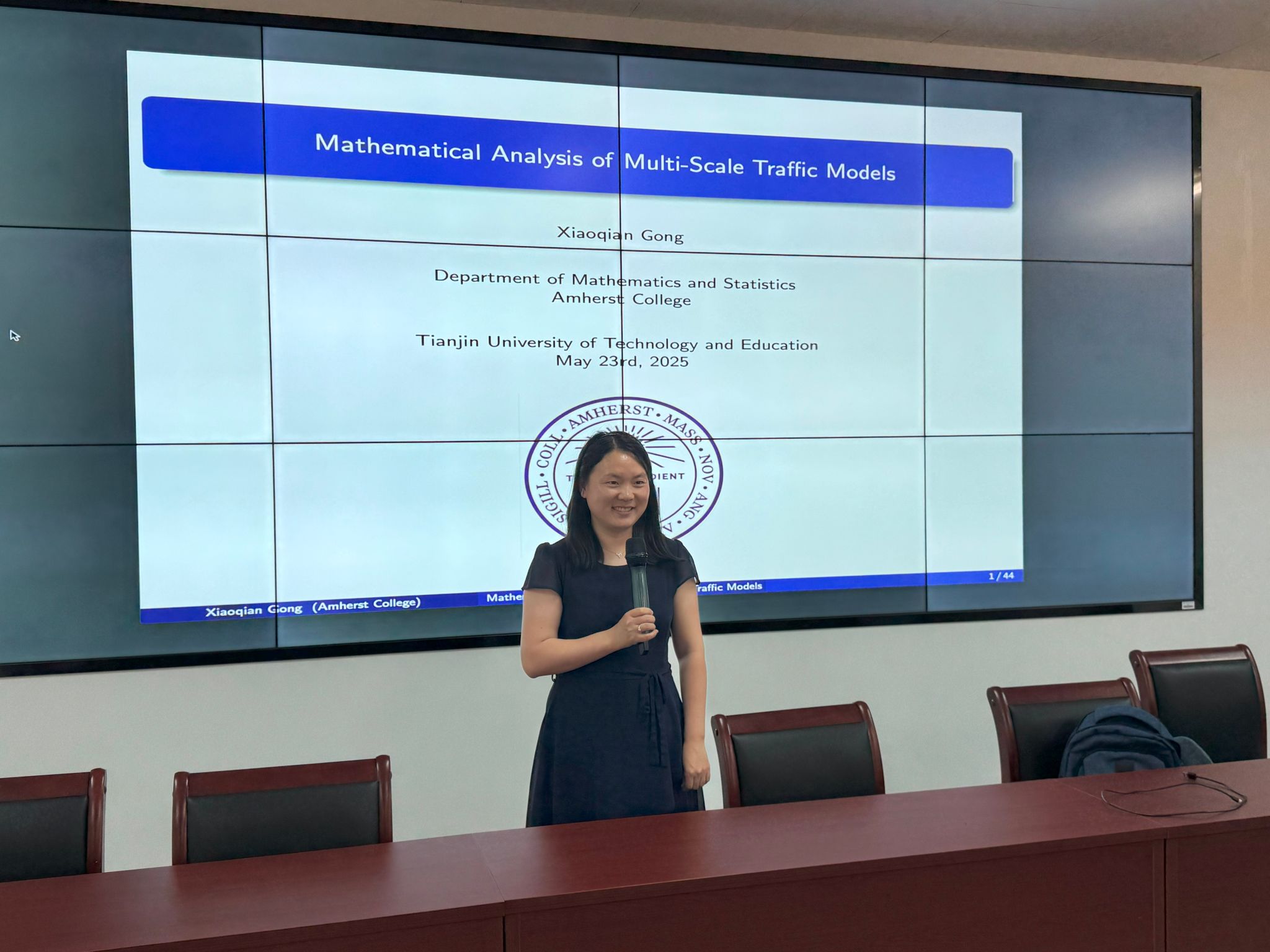 2025年5月23日下午,美国阿默斯特学院(Amherst College)弓小倩助理教授应学院邀请在A602会议室做了题为“自动驾驶中的数学分析与模拟”的学术讲座,报告由副院长孙维昆主持,学院部分教师、研究生和高年级本科生参加。